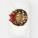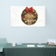 The wreath and ornaments create a luxury gold event backdrop charm.