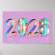 Happy New Year 2026 card with colorful metal numbers on shiny purple background