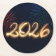 Happy New Year 2026 Sparkling Fireworks Round Paper Coaster