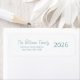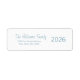 Modern Happy New Year 2026 return address label simple typography design. Set on a white background, this label has teal green customizable typography where you add your own lettering. A trendy addition to your cards and invitations this holiday season.