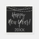 Happy New Years Black and Silver Foil String Lights Napkins for a Elegant New Years Party. The date can be updated on this Napkin.