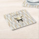Happy New Year Black Bow Gold Silver Champagne Square Paper Coaster