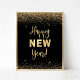 HAPPY NEW YEAR SIGN - BLACK & GOLD GLITTER CONFETTI 2 THEME - 8x10 inches.