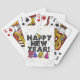 Happy New Year - Black Text with Party Hats Playing Cards