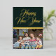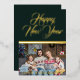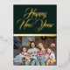 Happy New Year Royal Bottle Green and Gold Metallic Holiday Card With Photo Template and Text Template. Easily Customisable.