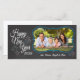This Happy New Year photo greeting card features a black chalkboard background with the wording: Happy New Year 2013. The year, names and photo are customisable. The holiday photo card is accented with colour chalk stars.