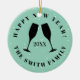 Happy New Year champagne flute cheers custom Ceramic Ornament . Elegant design with wine glass silhouettes and year date. Great for Christmas party.