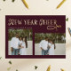 Happy New Year Cheer Modern Family Photo Burgundy Foil Holiday Card