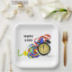 Black clock with curly colourful ribbon on white background for New Year's Eve Party