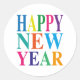 Simple and pretty Happy New Year stickers featuring a colourful and modern typography text that says Happy New Year, in blue, orange, green, yellow, fuchsia, aqua and purple colours.