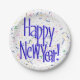 * Blue Text Design "Happy New Year!" Party Confetti and Party Streamers design on Paper Plates to customise.