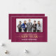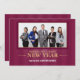 This flat New Years greeting card is a perfect design for a business. It's burgundy background with subtle vertical stripes and gold lettering gives it a very professional look. A customisable photo frame, on the front, allows you to add a photo of your staff of storefront. Customisable text on the front and back offer a place for a personal message to your customers and your business name.