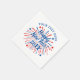 Happy New Year custom cocktail party napkins. Disposable paper napkins with personalised text. Add your own greeting and name. Red and blue fireworks design with year date.
