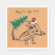 New Year celebration paper napkins with hedgehog.Custom background color.