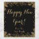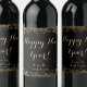 A black Happy New Year bottle label sticker with a printed gold glitter design and your family name that you can customise. Edit using the text editor to make your own stickers for wine, champagne, beer, and other bottles to use for New Year's Eve party decor or holiday gifts.
