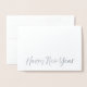 HAPPY NEW YEAR Elegant Script Holiday Photo SILVER Foil Card