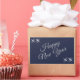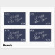 Modern and elegant Happy New year rectangular sticker with white sparkles on a navy blue background and trendy handwritten script. Simple sticker for wishing your friends and family happy New year. You can change the text if you want.