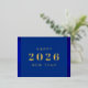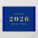 Happy New Year holiday post card postcard featuring blue colours and real foil on the front. Great for those looking for postcards to send to celebrate the new year. Nice blue colours. Custom text on the front. Use the template to create your own Happy New Year foil holiday postcard.
