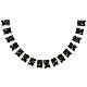 This bunting banner displays the words "Happy New Year" in a unique/fine print font with golden coloured letters plus fireworks, confetti, mask, hats, and champange glasses shapes and patterns in this New Years theme and style. All banners have single sided printing outdoor safe made with sturdy plastic polystyrene and thick plastic rope has (16) 5.5" x 8" swallowtail flags on a 6' long string.