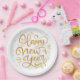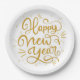 This chic holidays design features "Happy New Year" in elegant gold script. #newyear #happynewyear #newyearseve #newyearsday #holidays #festive #celebrate #celebration #seasonal #modern #chic #stylish #elegant #gold #golden #white #calligraphy #script #newyearsparty #newyearseveparty #party #partysupplies #tableware #paperplates #plates