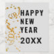 Designed with white customisable background and overlay of gold faux glitter confetti on left side of labels. "Happy New Year" followed by custom year is in black bold block lettering. Modern style design and great for decorating your New Year's Eve party wine bottles.