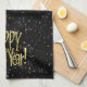 Happy New Year - Gold Text on Black Confetti Tea Towel