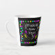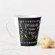 This is one of my New Year's drawing that I call, "Happy New Year Greetings," I have added colorful party streamers and confetti and colorful polka dots as the background to my drawing so that my New Year's drawing is colorful and unique. You can now order my drawing added onto this small latte mug to celebrate a New Year.