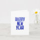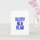 Hand-drawn text Happy New Year with blue ultramarine colour greeting card.