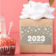 Natural beige colour background, white stars garlands, happy new year 2023 customisable text
