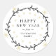 Happy New Year Laurel Wreath Gold Stars Name Classic Round Sticker