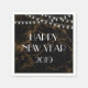 Happy New Year Lights Gold Black Marble Napkin