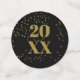 This fun table confetti design has a mixture of metallic gold backgrounds on one side and text sprinkled with gold on black backgrounds for the reverse. Supplied text provides a 'Happy New Year' message along with a template to add the current year.