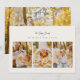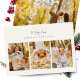 Happy new year minimalist 4 photo collage script Holiday Card . This elegant card includes a photo collage of 3 photos on the front and 1 on the back with custom text and background.
