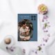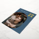 Modern personalised blue 2023 New Year Photo Greeting Card with real gold foil, a round geometric frame for your picture of choice and a modern geometric pattern on the back. All background colours - front and back - can be changed if you like.