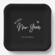 Happy New Year Modern Minimalist Typography Black Paper Plate