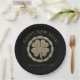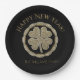 Happy New Year or Your Text Four Leaf Clover Black and Gold, Faux Gold Foil Glitter Look Elegant New Year's Party or Good Luck Occasion Paper Plates, you can change or delete all text