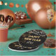 These New Year's Eve party plates feature gold balloons and string lights. Personalise them with the year. Other matching party items also available.