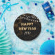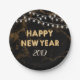 Happy New Year Party Gold Balloons Lights Black Paper Plate