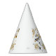 These party hats displays the words "Happy New Year" in a unique/bold print font with black & gold letters plus fireworks, confetti shapes and patterns in this New Years theme and style. All paper hats have an attached elastic string printed in full vibrant colours made in the USA has a Minimum of 12 order requirement.