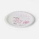 Pretty hand painted watercolor champagne glasses filled with rose pink Champagne say cheers to the New Year party plates. Personalise with your own New Year's party year. Original watercolor art and design by Sarah Trett www.sarahtrett.com for www.mylittleeden.com on zazzle.