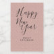 Celebrate in style with this personalised pink glitter elegant New Year's Eve Party wine label with the text Happy New year in black chic script calligraphy. Simply add your (business) name and your New year''s Eve party gift wine labels are ready to go. Exclusively designed for you by Happy Dolphin Studio. If you need any help or matching products, please contact us at happydolphinstudio@outlook.com.