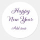 Happy new year purple calligraphy simple minimal classic round sticker