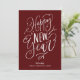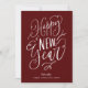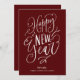 Happy New Year Red Gold Script Modern Business Non Photo Holiday Card. Send customisable and personalised holiday greetings to friends, colleagues and family in simple, chic, elegant and modern photo design festive, natural minimalist style cards! Below the calligraphy features your custom greeting message in modern typography.