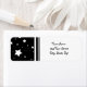Happy New Year return address labels in classic and elegant black and white stars pattern, the perfect addition to your New Year's cards and envelopes.