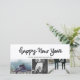 Happy New Year Script Three Photo Collage Modern Holiday Card
