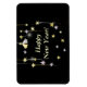 Magnet with my digital design of silver and gold coloured stars, bells and streamers on a black background. Customisable text says "Happy New Year!"