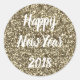 Happy New Year White Text on Gold Glitter Elegant Classic Round Sticker