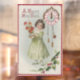 Pretty, vintage picture of a girl holding flowers, a clock, holly leaves with berries and wording, "A Happy New Year", is featured on this holiday window cling. This is an easy and quick way to decorate your windows for the holidays. Sticks to glass surfaces electro-statically and can be removed and used over again too!