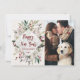 A modern winter floral and greenery design photo New Year's photo card with a festive red reverse side. Easy to edit or delete the text fields on the front to suit your personal requirements and change the photo to your own.