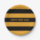 Happy New Year Yellow and Black Paper Plate